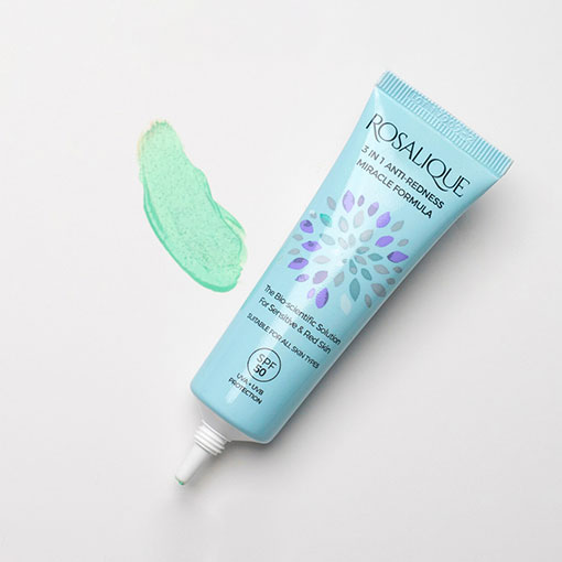 Crema desarrollada especialmente para pieles hipersensibles y con tendencia al enrojecimiento, aunque se puede usar en todo tipo de pieles, incluso acneicas. Rosalique proporciona un efecto corrector instantáneo a través de su exclusiva tecnología microencapsulada y ofrece ingredientes clínicamente probados para reducir el enrojecimiento α-bisabolol, zeolita, provitamina B5, urea y manteca de karité. Su piel permanece protegida a largo plazo de los rayos UVA/UVB con un SPF de 5*.